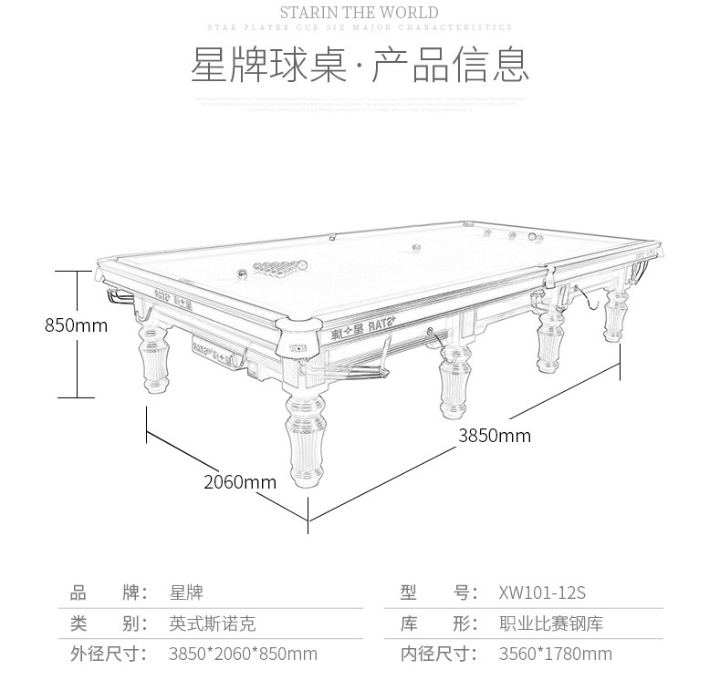 星牌 XW101-12S 英式斯諾克臺(tái)球桌