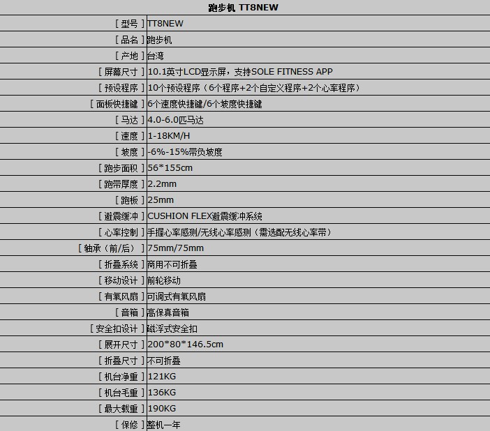 美國(guó)SOLE速爾 TT8NEW商用跑步機(jī)