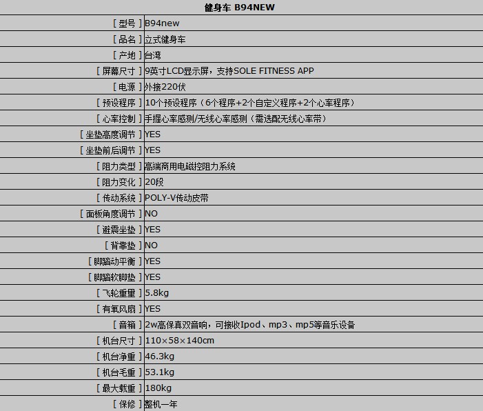 美國(guó)SOLE速爾 B94NEW立式健身車(chē)
