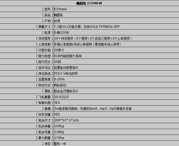 健身器材 > 健身器材大全 > 家用健身器材 > 家用橢圓機 > 美國SOLE速爾 E35NEW橢圓機