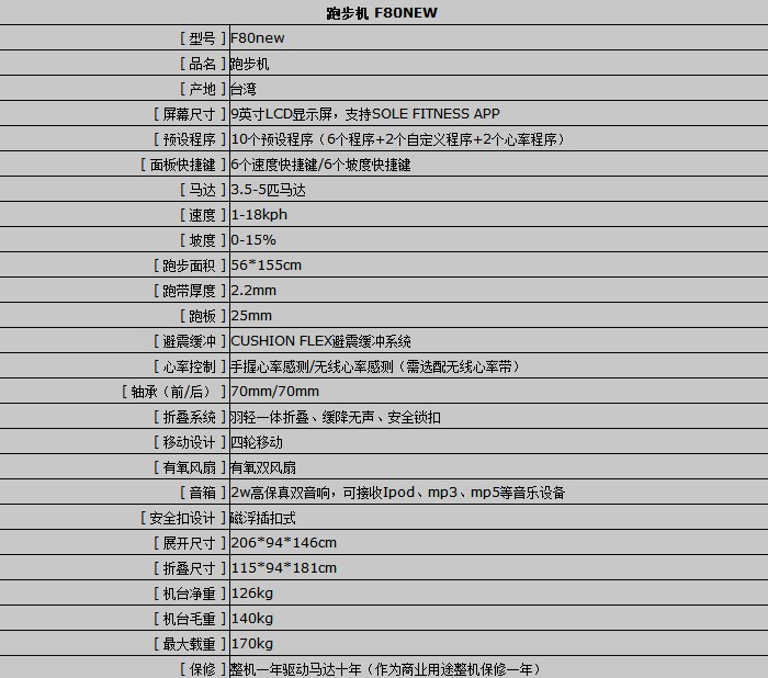 美國SOLE速爾 F80NEW商用跑步機