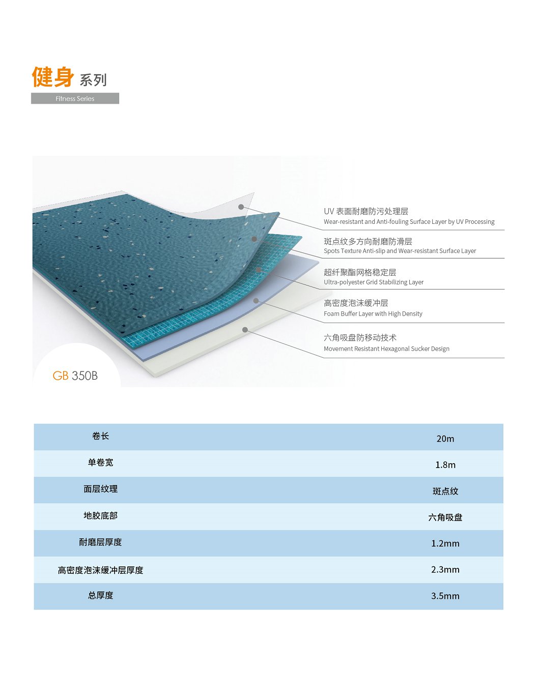 天速健身房地膠GB 350B天空藍