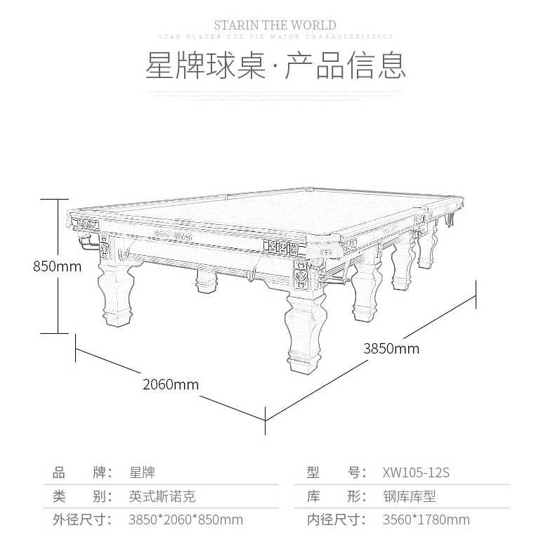 - 星牌 XW107-12S 英式斯諾克臺球桌
